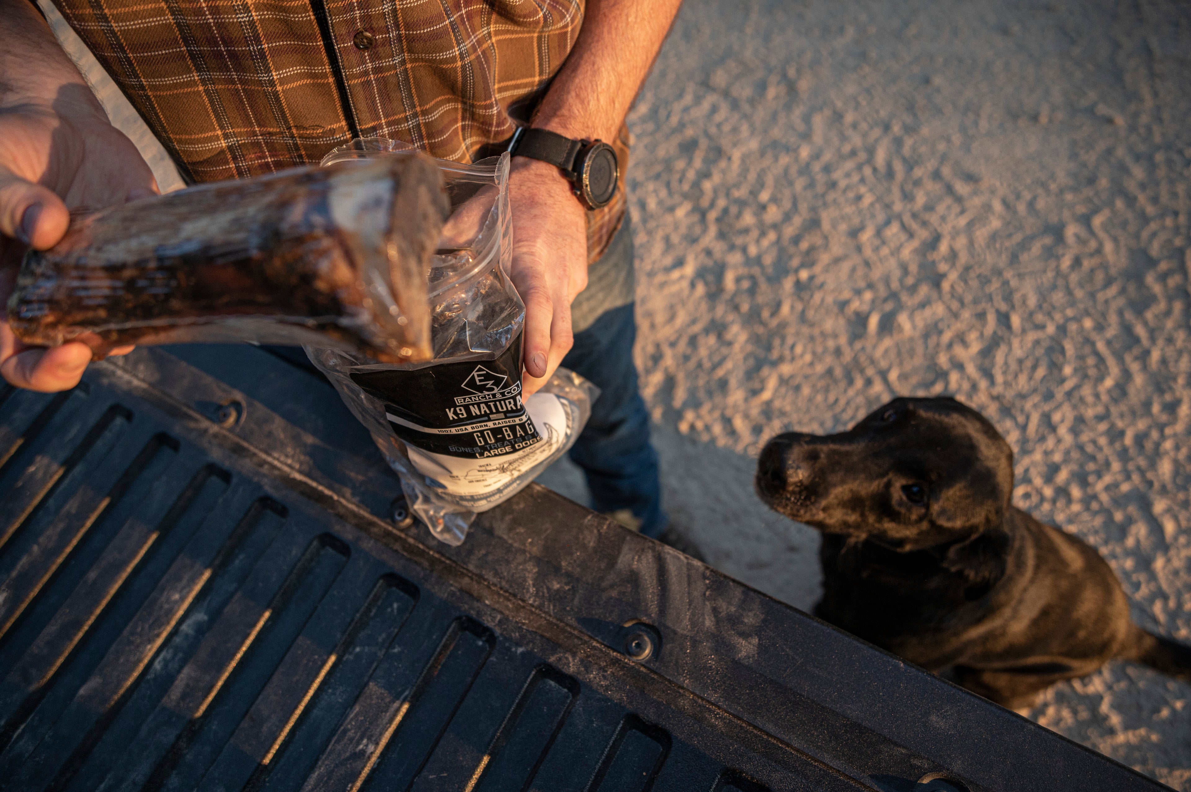 At the E3 Ranch in America’s heartland, our respect for God’s creation drives us to fully utilize the cattle we raise, leaving nothing to waste. We designate every element – meat, bone, and hide – for re-purpose. By doing so, we’re able to offer your canine companion healthy, 100% natural treats. Born, raised and harvested in the U.S.A., our protein products are ideal for training or rewarding in the field.
